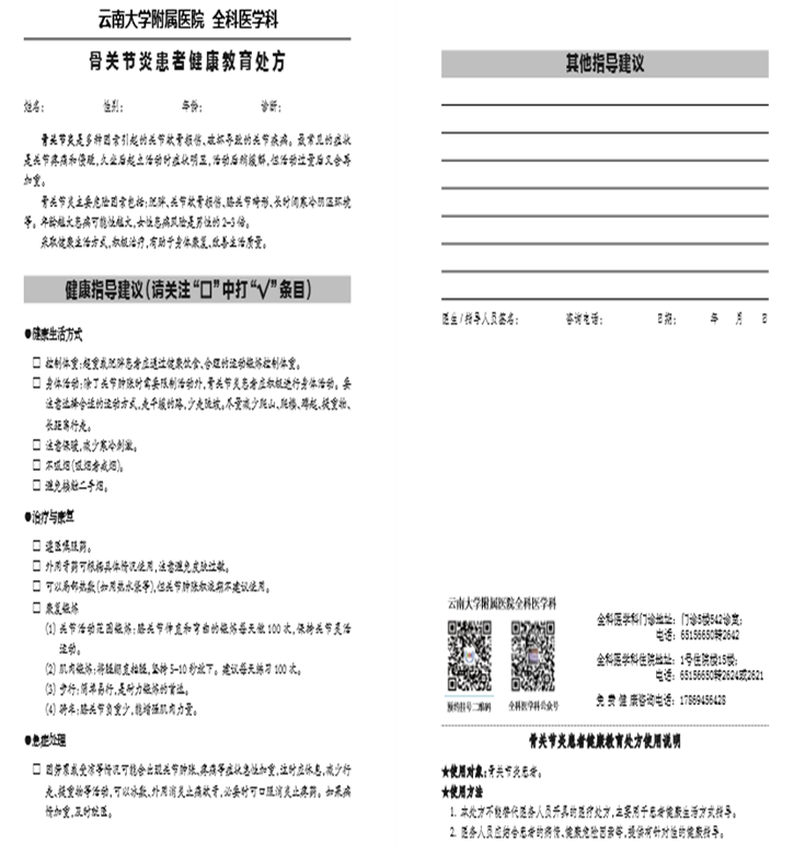 第四步,开具健康管理处方。云南大学附属医院专家结合实践组戒毒人员身体状况和病症,开具脑血管病、高血压、冠心病、慢阻肺病、糖尿病、骨关节炎症六大病症处方,积极跟踪治疗,有效延缓并发症的发生和发展,减轻心、肾、血管等靶器官的损害,促进身体康复,改善戒治生活质量。