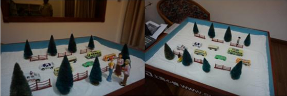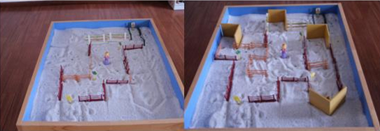 第四次沙盘叶某能真正投入和享受沙盘的快乐,共用时40min。制作的过程中,叶某非常投入,特别注重细节,这些表明她已经在享受沙盘制作过程了,不再一味的追求结果,焦虑水平有所降低,心态发生改变。