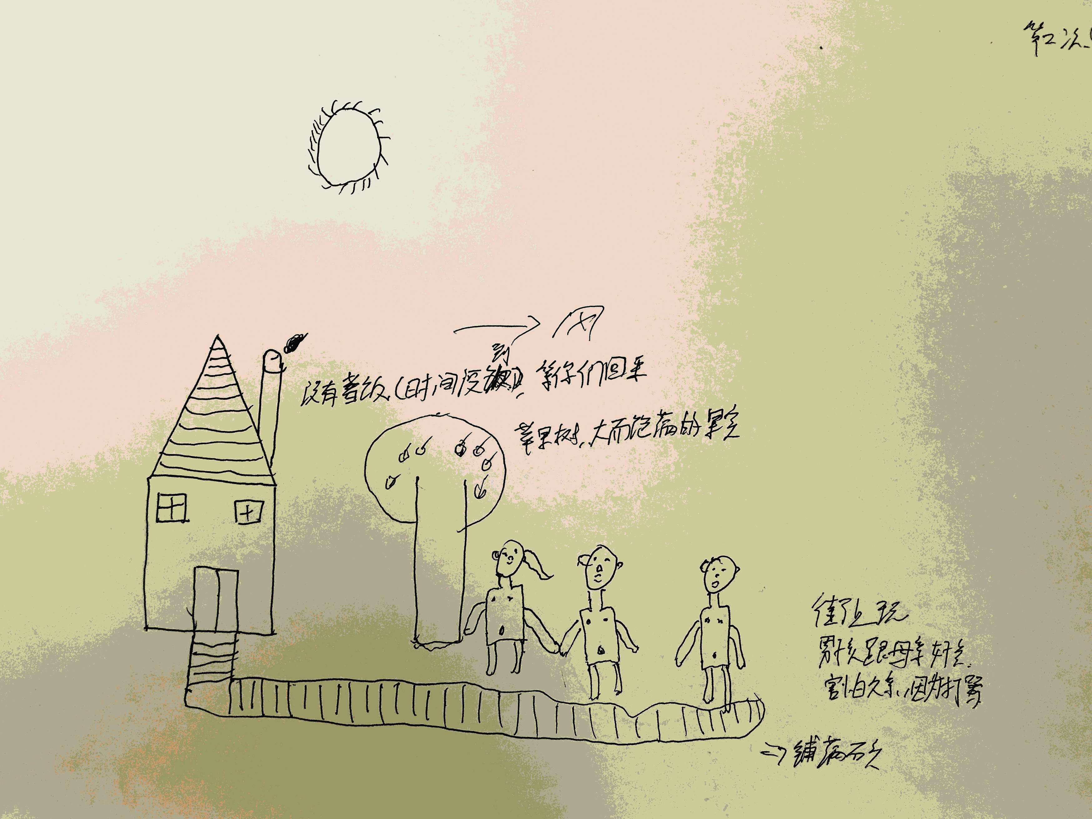 3.过程:在取得来访者同意的前提下,进行绘画心理测验,结果如图: