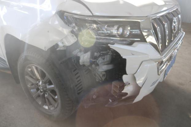前保险杠左侧破裂,部分壳体脱落;左前灯具组灯罩破碎,部分脱落;左前翼子板前部及发动机罩左侧弯折变形,且伴有红色擦痕;左前轮前挡泥板破裂,部分脱落;左后视镜断裂部分脱落,未脱落部分附有撕裂布料及棉絮;左侧A柱中部凹陷变形;右后视镜壳体脱落。