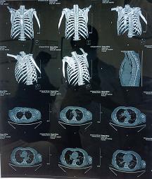 1. 荥阳市中医院放射检查报告单(2020.09.20):左侧锁骨中远端见骨折影,断端错位,左侧肩胛骨见骨折影,断端位置可。