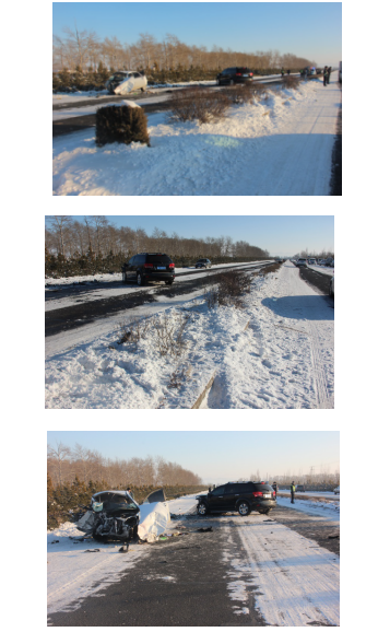 事发时小型轿车(蒙号)由北向南方向行驶,越过中心隔离带运动至由南向北方向内侧车道,与由南向北行驶的小型普通客车(蒙号)碰撞;两车为小型普通客车(蒙号)前部与小型轿车(蒙号)右侧前部碰撞;碰撞后,小型普通客车(蒙号)顺时针旋转停于现场最终位置,小型轿车(蒙号)逆时针旋转停于现场最终位置。