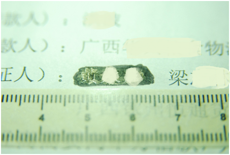 图1:检材1经光学检验后清晰可见其被污损内容