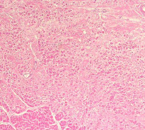 镜检:腺体轮廓尚可辨,未见明显异常,腺体细胞轻度自溶。