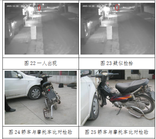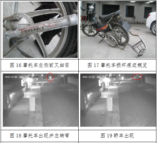 1.根据对固定式视频图像检验,结合事故现场照片及委托方调查可知:该视频图像中显示的事故即为本次事故,视频画面中的摩托车即为本次事故中的摩托车,而视频画面中的两辆汽车则分别为本次事故中的轿车及小型客车。