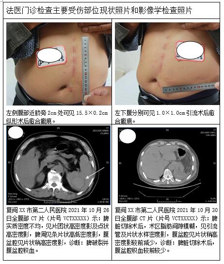 荆门腾飞法医司法鉴定所对脾脏破裂(迟发型)与交通事故因果关系进行法医临床鉴定案