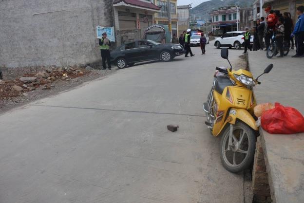 甲车在现场路面上留有倒地挫划印,挫划印起点至乙车右前轮的距离约为4.7m。