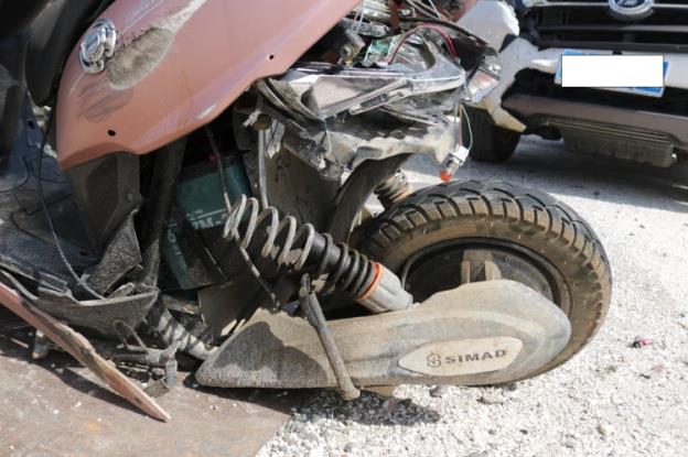 未发现某品牌二轮摩托车与某品牌小型轿车相接触的痕迹。