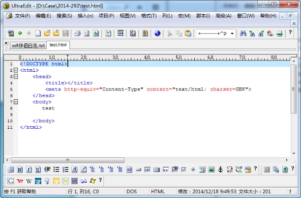 创建一个检验测试使用的html网页文件,命名为“test.html”,如图5所示。