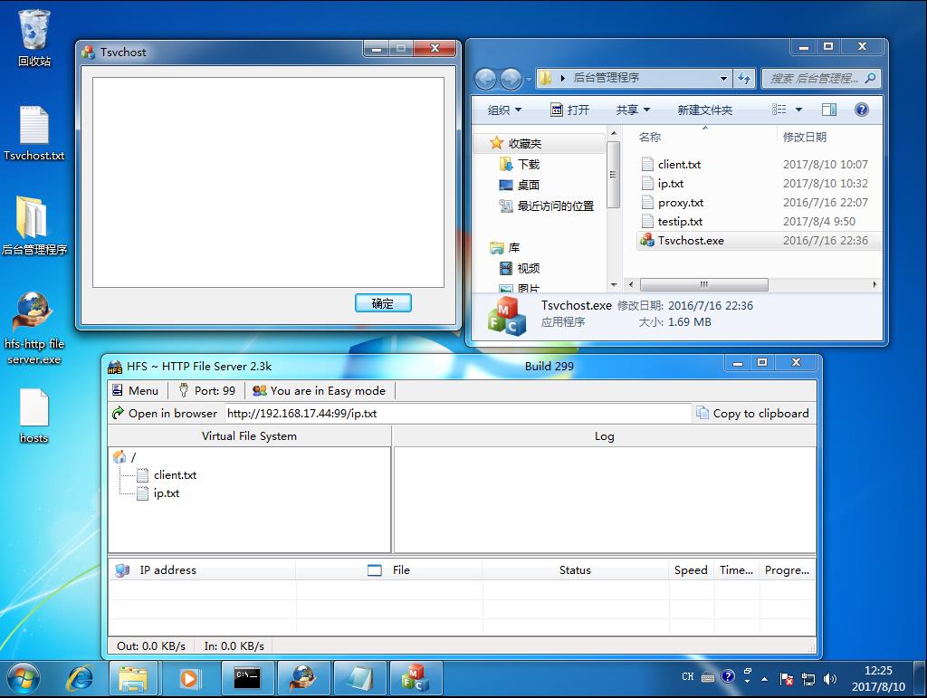 安装配置hfs软件,将端口设置为99,将“client.txt”和“ip.txt”文件加入虚拟文件系统如下图所示: