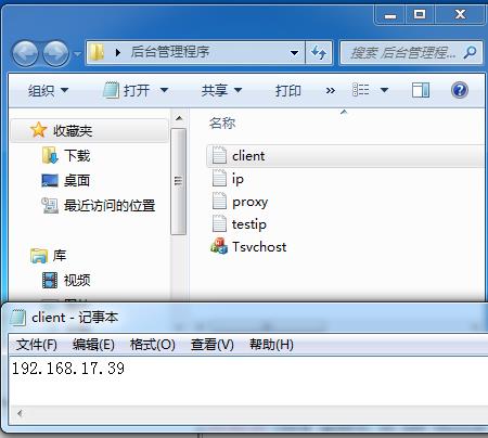 在“攻击中转控制服务器”上的“Tsvchost.exe”程序窗口显示“192.168.17.39 成功连接”,如下图所示: