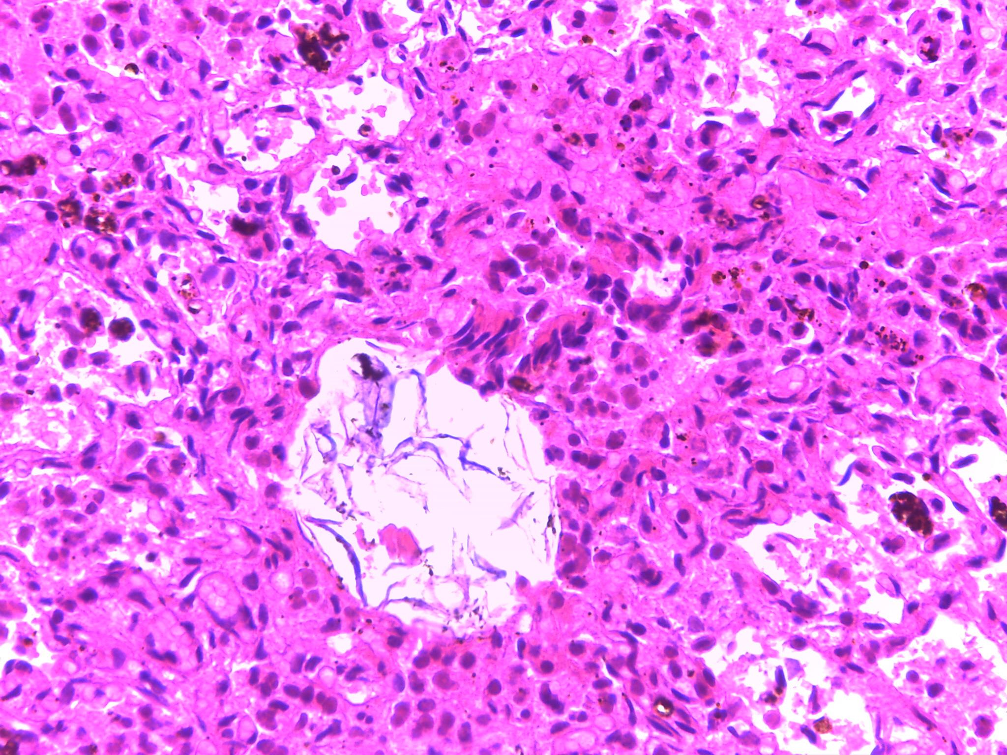 3、部分肺泡腔内见胎粪小体及角化上皮等羊水有形成分;